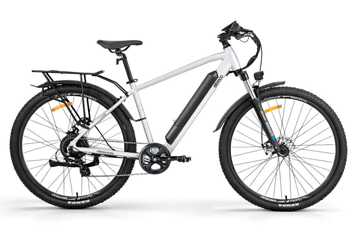 У новой модели от Eltreco лёгкая алюминиевая рама с интегрированной съёмной батареей (улучшенная развесовка по сравнению со старой моделью), большие колёса 29" и покрышки Kenda с универсальным протектором, 21 скорость от Shimano, пружинно-эластомерные амортизационная вилка с блокировкой, надёжный электромотор 350 Ватт и аккумуляторная батарея на 12 Ач, позволяющая преодолевать большие расстояния без подзарядки!